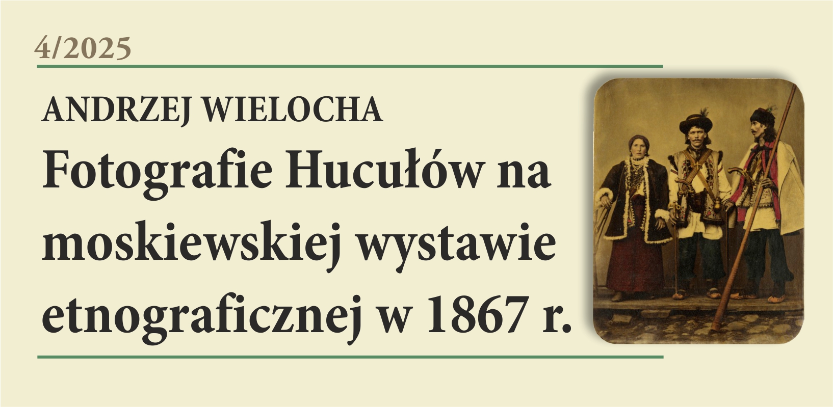 Czwarty i zapewne ostatni artykuł w tegorocznym e-Płaju oddajemy nie tyle może do rąk, co do oczu czytelników tuż przed samą gwiazdką, a zatem pod choinkę. Jest w nim o najstarszych znanych fotografiach Hucułów wykonanych w 1866 roku na organizowaną w Moskwie wystawę etnograficzną. Można się z niego dowiedzieć o okolicznościach ich powstania i o tym, dlaczego do dziś pozostają anonimowe, choć ustalenie ich autorstwa jest przecież – przy odrobinie starań – możliwe. Jest w nim także o tym, że najstarsze fotografie Łemków, Bojków i Hucułów z obydwu stron Karpat, zawdzięczamy – o zgrozo – zorganizowanej pod carskim patronatem wystawie etnograficznej w Moskwie. Nie ma co ukrywać, że miała on manifestować całemu światu słowińską jedność – oczywiście pod berłem carów i na zasadach pisanych w Moskwie. Słowiańskiego „miru” na rosyjską modłę na szczęście nie ma, ale piękne fotografie zostały i pokazują karpackich górali z połowy XIX w.