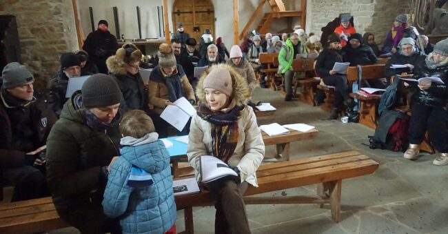 Tradycyjnie, bo to już od 14 lat, w ostatnią sobotę stycznia zjechali do Łopienki kolędnicy. Prawie z całej Polski! Ze Śląska, z Warszawy, Krakowa, Lublina, Niska, Zgierza, Stalowej Woli, Poznania, Śremia, Cisnej i Sanoka. Każde kolędowanie jest inne, ale tegoroczne było szczególnie udane i to właśnie za sprawą gorącej atmosfery, autentycznej radości i dużego zaangażowania wszystkich uczestników. Obecność księży Piotra Bartnika i Bogdana Kiszko wpłynęła nie tylko na utrzymanie modlitewnego charakteru kolędowania, ale także wzbogaciła repertuar kolęd. Śpiewane były kolędy polskie i ukraińskie, stare i nowe, skoczne i rzewne, poważne i zabawne, ale wszystkie z czytelnym przekazem teologicznym. Jeżeli do tego dodać akompaniament gitar, skrzypiec i akordeonu, to łatwo sobie wyobrazić jak było pięknie. Na szczególne wyróżnienie zasługuje grupa Irka ze Śremu, która przygotowała własne śpiewniki i nowe kolędy, a wyćwiczone głosy Doroty i siostry Edyty bardzo wspierały wysiłki pozostałych kolędników. Siostra Edyta z racji swoich ukraińskich korzeni znacząco wspierała nas także w śpiewaniu ukraińskich kolęd. Wsparciem był także głos Haliny Rachwalskiej z zespołu Łopienka, która po raz pierwszy uczestniczyła w naszym kolędowaniu. Kolędowanie zakończyło się tradycyjnie Koronką do Bożego Miłosierdzia i pamiątkowym zdjęciem uczestników pod ikoną Matki Bożej Łopieńskiej.