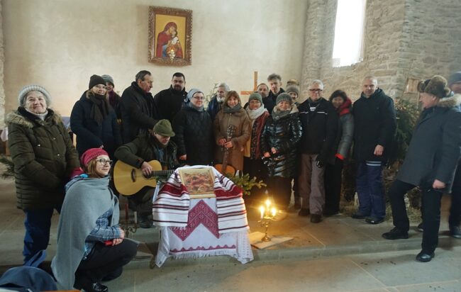 Tradycyjnie, bo to już od 14 lat, w ostatnią sobotę stycznia zjechali do Łopienki kolędnicy. Prawie z całej Polski! Ze Śląska, z Warszawy, Krakowa, Lublina, Niska, Zgierza, Stalowej Woli, Poznania, Śremia, Cisnej i Sanoka. Każde kolędowanie jest inne, ale tegoroczne było szczególnie udane i to właśnie za sprawą gorącej atmosfery, autentycznej radości i dużego zaangażowania wszystkich uczestników. Obecność księży Piotra Bartnika i Bogdana Kiszko wpłynęła nie tylko na utrzymanie modlitewnego charakteru kolędowania, ale także wzbogaciła repertuar kolęd. Śpiewane były kolędy polskie i ukraińskie, stare i nowe, skoczne i rzewne, poważne i zabawne, ale wszystkie z czytelnym przekazem teologicznym. Jeżeli do tego dodać akompaniament gitar, skrzypiec i akordeonu, to łatwo sobie wyobrazić jak było pięknie. Na szczególne wyróżnienie zasługuje grupa Irka ze Śremu, która przygotowała własne śpiewniki i nowe kolędy, a wyćwiczone głosy Doroty i siostry Edyty bardzo wspierały wysiłki pozostałych kolędników. Siostra Edyta z racji swoich ukraińskich korzeni znacząco wspierała nas także w śpiewaniu ukraińskich kolęd. Wsparciem był także głos Haliny Rachwalskiej z zespołu Łopienka, która po raz pierwszy uczestniczyła w naszym kolędowaniu. Kolędowanie zakończyło się tradycyjnie Koronką do Bożego Miłosierdzia i pamiątkowym zdjęciem uczestników pod ikoną Matki Bożej Łopieńskiej.